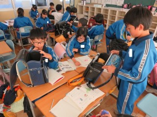 本日、来年度入学予定の園児を対象とした『就学時検診』を行いました。5年生は、健診の誘導はもちろんのこと、健診後に園児と仲良くなるための活動にも取り組みました。園児が喜んでくれそうな遊び(トランプ、折り紙、絵しりとり、ぬり絵、射的、さかな釣り)を考え、用具の準備などを進めてきました。健診で緊張していた園児たちは、5年生の子供たちと遊ぶうちに笑顔になり、「楽しかった!」と言って、帰宅しました。5年生の子供たちの表情にも、園児を楽しませることができたという満足感が表れていました。この経験を機に、4月から<最高学年>になるという自覚を高めていってほしいです。