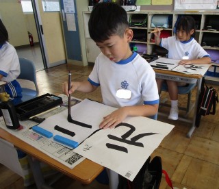 3年生の書写の学習の様子です。今日は、『元』という漢字の「はね」や「曲がり」の書き方に気を付けながら練習を進めました。子供たちからは、「〇〇さんの曲がりが上手に書けているね。」「1回目より2回目の方がはねが上手になったよ。」という声が聞かれ、手本をよく見て字の形を意識していることが伝わってきました。もうすぐ、書初の練習が始まります。大きな筆を使って書くことを楽しみにしている子供たちです。