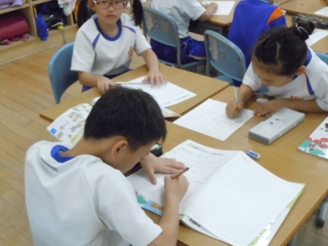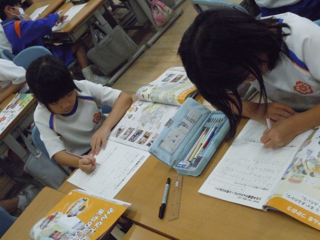 生活科の時間です。今日は1組が砺波図書館に校外学習に行っています。2組は金曜日に行く予定です。どんなことを見てきたいのか、聞いてきたいのか計画を立てています。