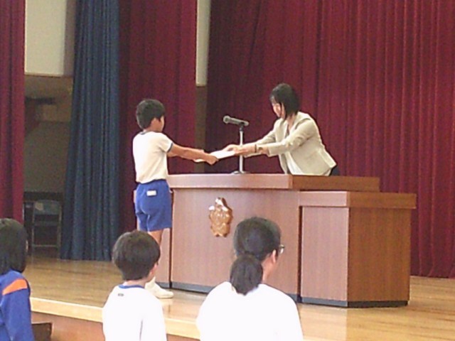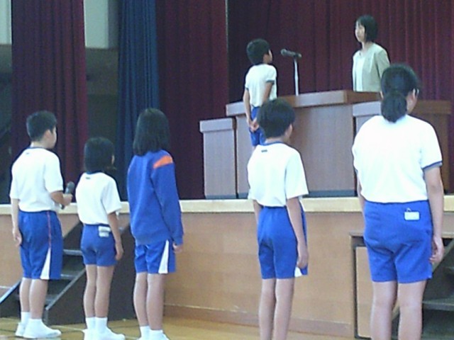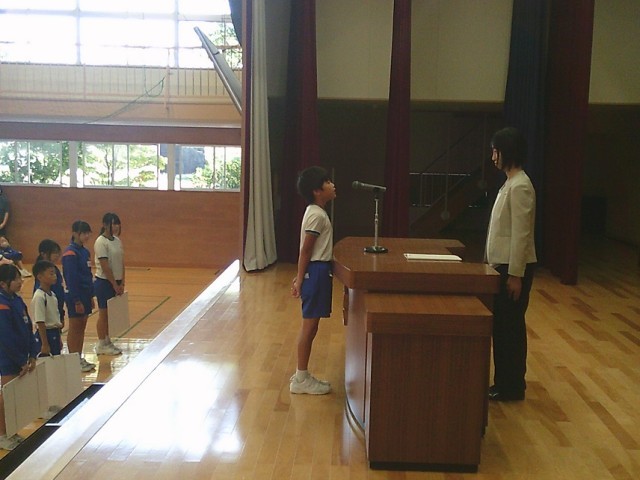 そして、情報委員長が全校児童を代表してタブレット使用許可証を校長先生から受け取りました。