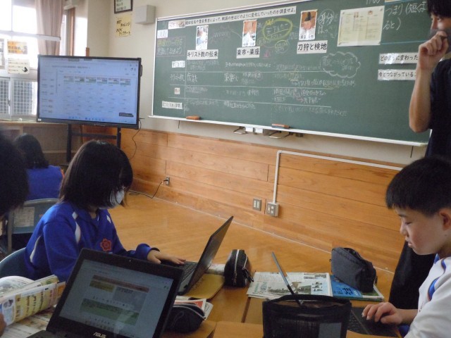 社会の時間です。「織田信長や豊臣秀吉によって戦国の世はどのように変化していったのか調査せよ」という調査テーマを設け、調べ学習を行ってきました。そして、そのまとめをしています。一人一人が詳しく調べてきたけれど、簡潔に短文で「つまり~」とまとめることを求められています。たくさん調べたので、ついつい長くなりがちですが、必要なことを漏らさず、簡潔にまとめることに苦労しています。