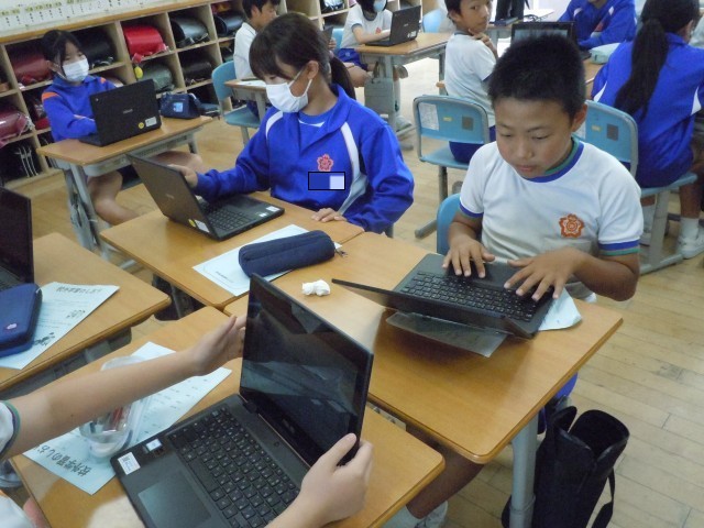 総合的な学習の時間です。先日稲刈りをしたバケツ稲のまとめに取りかかろうとしています。これまでの観察や活動のカードを開いて、振り返りをしています。