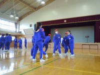 家庭科の時間です。エプロンの製作も終盤です。ひもを通して身に着けられる形になってきました。自然と身に着けて形や着心地を確かめています。