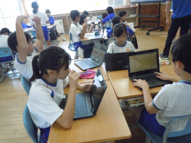 算数の時間です。概数の学習をしています。39人で遠足に行く場合、一人620円の電車代を払うのと、1台38220円のバスを借りるのを比べています。概数を使うと簡単に考えられることが分かります。