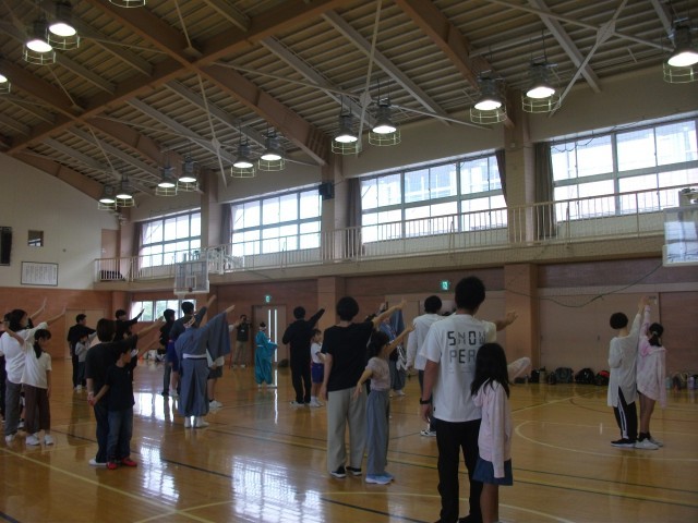 親子活動でよさこい体験をしました。親子でペアの振り付けを踊り、楽しく活動しました。