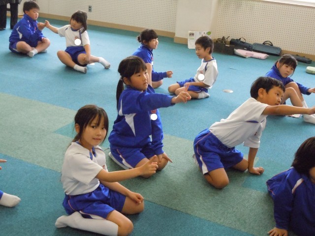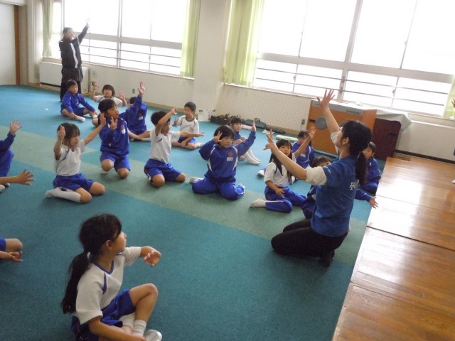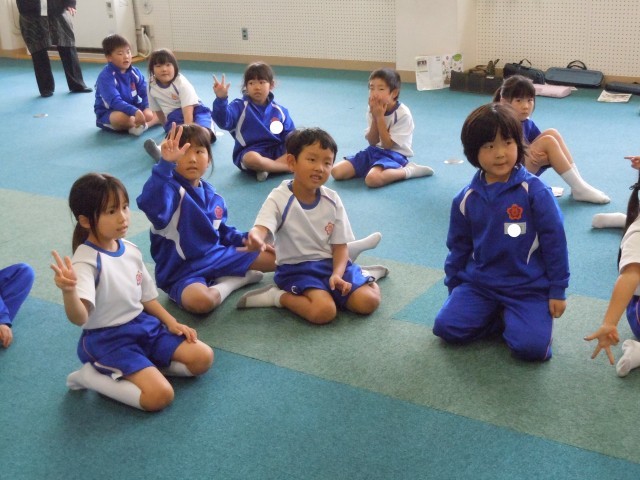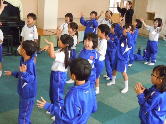 音楽の時間です。今月の歌の「にじ」を歌っています。歌詞に合わせて手話をしながら歌っています。一つ一つの動きが歌詞の意味とつながっているので、考えながら歌っているようです。