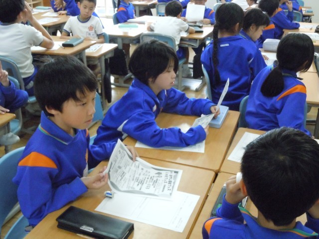 総合的な学習の時間です。「福祉」をテーマに学びを進めています。今日は、社会福祉のお仕事をしておられる方から学びました。先日の「林フェス」で行われた「福祉フェス」のことで話を聞いています。
