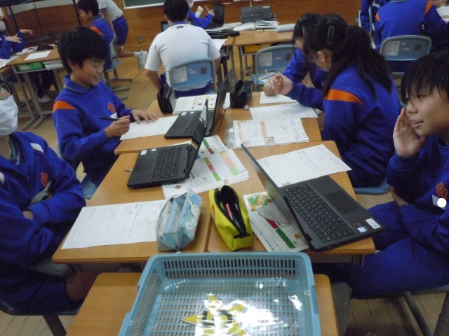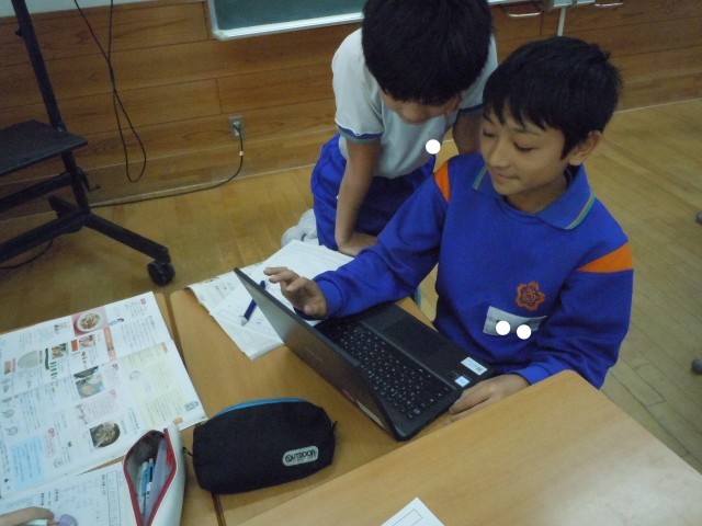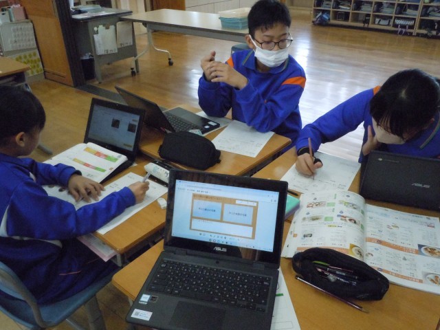 家庭科の時間です。先日、調理実習でジャーマンポテトを作った子供たち。今日は、ご飯に合うおかずを家でつくる計画を立てています。チャレンジングなメニューを考える子、自分の好きなメニュ-を考える子、簡単に時短でつくれそうなメニューを考える子。その子らしさが表れているようです。