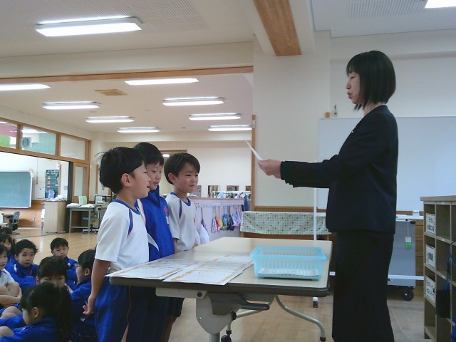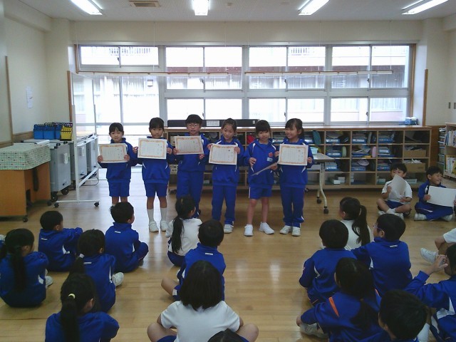 1年生は、男子が4位まで、女子は6位までの子が、校長先生から賞状をいただきました。