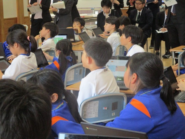 小学校教育課程研究集会で社会の学習をたくさんの先生方に見ていただきました。4年生はみんなで富山県マスターを目指し、特色ある地域と人々のくらしについて学習しています。今日は、氷見市についての学習を始める1時間目です。資料から疑問や調べてみたいことについて考えを出し合い、学習問題をつくり、これからの学習計画を立てました。