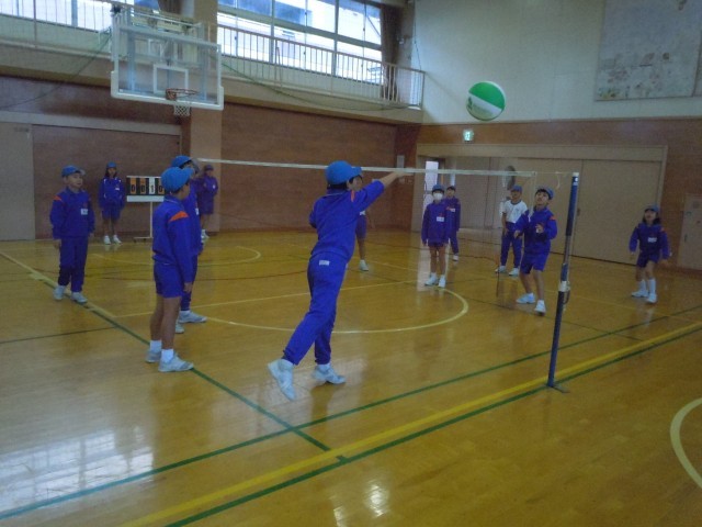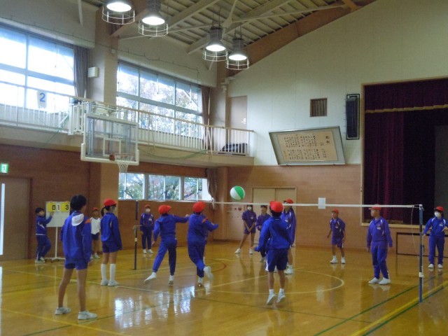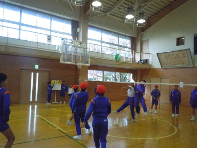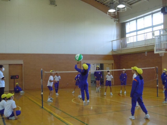 体育の時間です。「ビーチボール」をしています。今日は、たくさんの人がコートに入っているので、あまり動かずにボールを拾うことができます。しかし、ボールが思うよう繋げず、コントロールが難しいです。