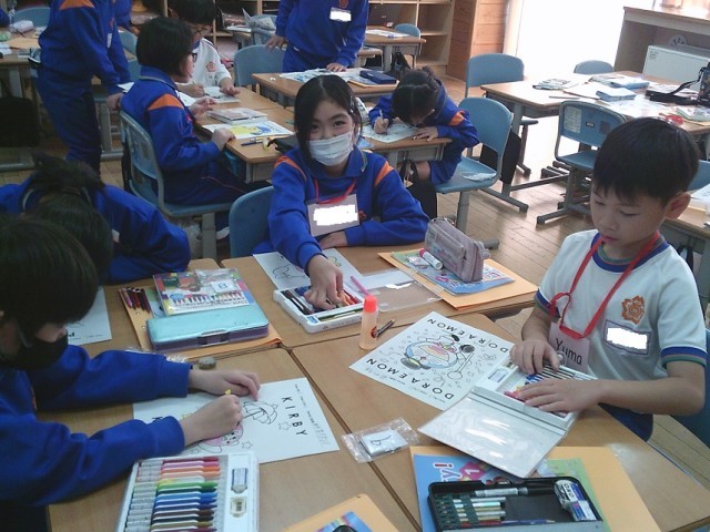 英語でコミュニケーションをとり、見事ゲットできた人からぬり絵を楽しみました。
