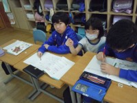 ノートの方眼を使うと簡単にかけることに気付き、楽しくいろいろな図形をかき、友達と見せ合っていました。