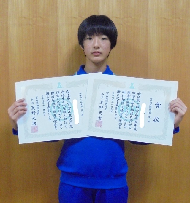 第1回富山県次年度中学生年代相撲大会 女子個人軽量級 優勝 6年