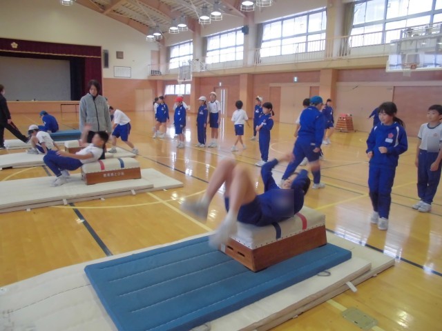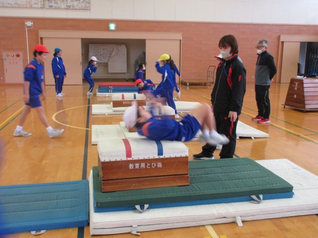 講師の先生をお招きして、台上前転のコツを教えていただきました。