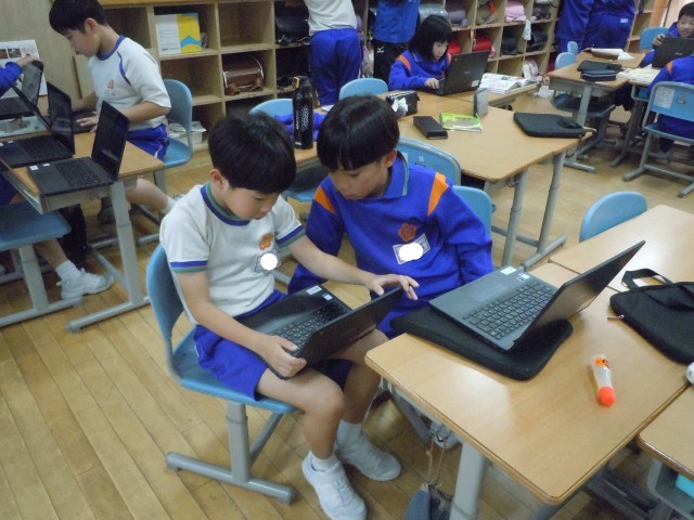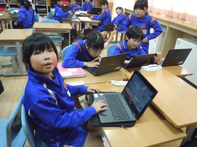 国語の時間です。「すがたを変える大豆」の学習したことを生かして、大豆に代わる食品を自分で決めて文章を書いています。同じ食品ごとにグループになってヒントを出し合っています。