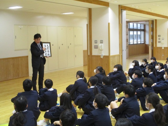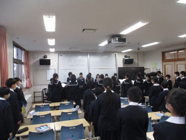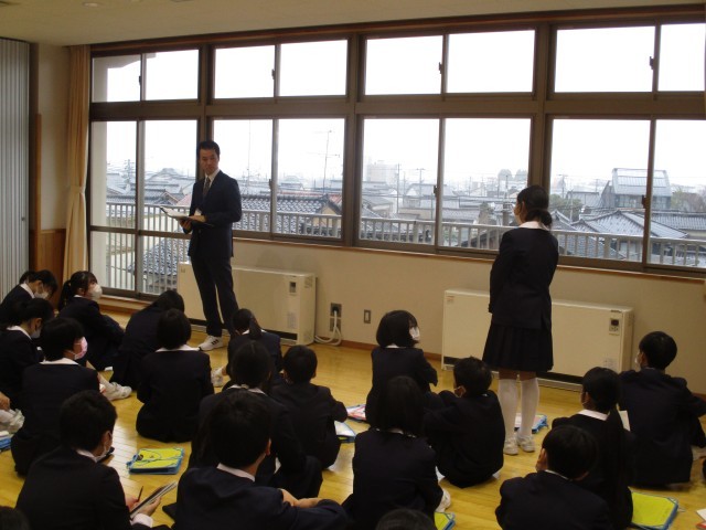 出町中学校の校訓について教えていただいたり、先輩たちの授業の様子を参観したりして、気持ちを高めました。
