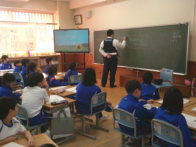 生活科「もっと なかよし まちたんけん」の学習で北部駐在所のお巡りさんの話を聞きました。