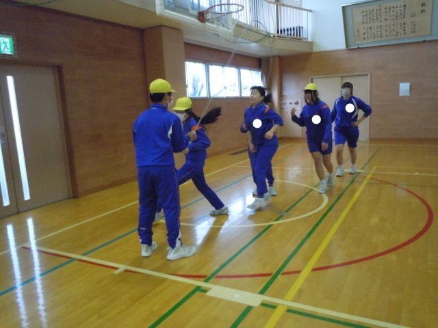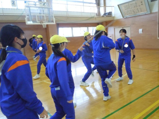 体育の時間です。8の字跳びに挑戦しています。よい記録を出す秘訣を知っている6年生なので、コンパクトに速く縄を回します。すると、体が大きい6年生なので、難度が増します。チームとしての練習がとても大切になってきます。