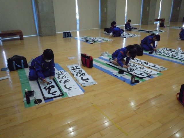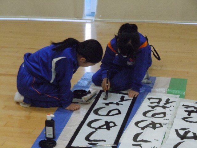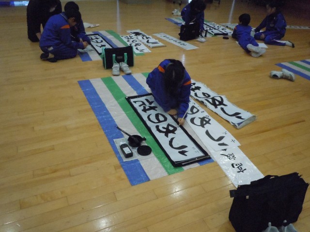 書写の時間です。書初に取り組んでいます。「うめの花」と書きますが、ひらがながとても難しく、苦労しています。