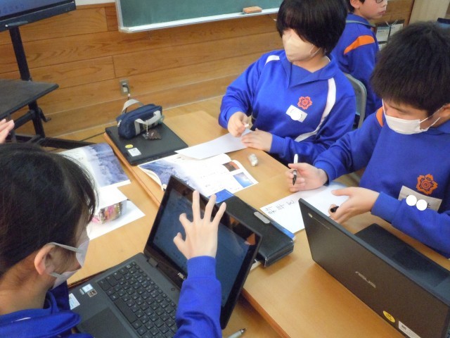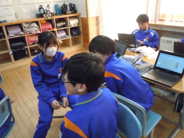 国語の時間です。冬をテーマに短歌や俳句を書いています。思いつくままにタブレットに書きため、短冊形の紙に清書します。季節の言葉を入れながら書いていますが、年末年始の楽しみを入れている子が多いようです。
