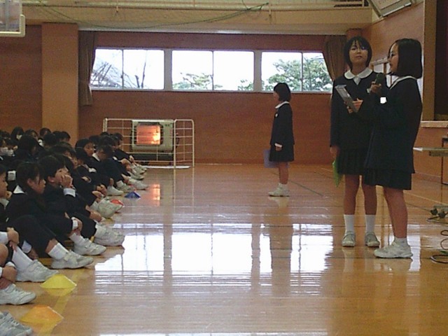 代表児童が、2学期がんばったこと、冬休みや3学期にがんばりたいことを発表した後、2学期の終業式を行いました。