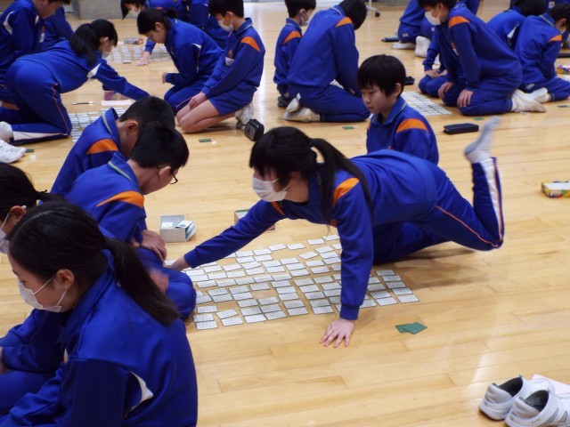 1枚でも多く札を取ろうと、一生懸命に耳を澄ませ、札を探す様子が見られました。