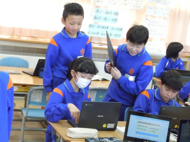 算数の時間です。割合の学習をしています。30パーセント引きの物の値段の求め方について考えています。生活にぜひ生かしていきたい力です。
