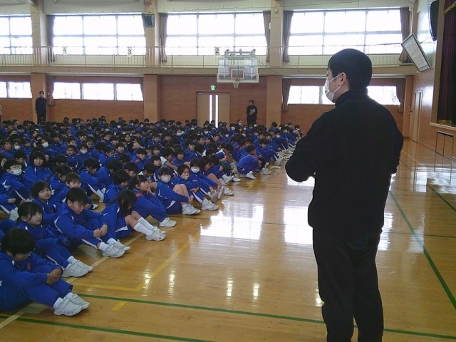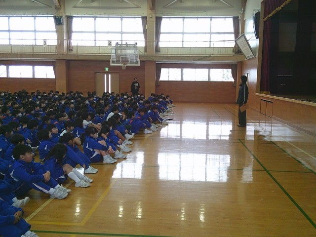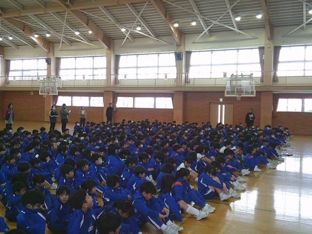 体育館で待っていた子供たちは静かに緊張感をもって待機しました。