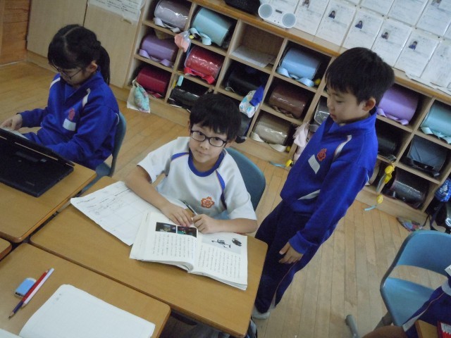 国語の時間です。「ロボット」を読んでいます。いろいろなロボットについて、説明するために大切な言葉を考えながら読んでいます。大切な理由も合わせて説明し合っています。