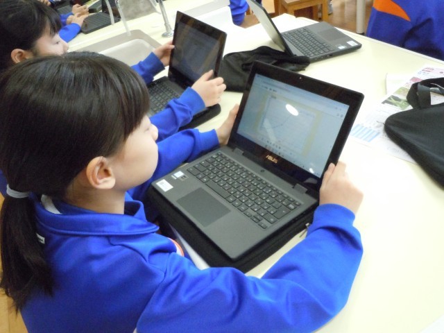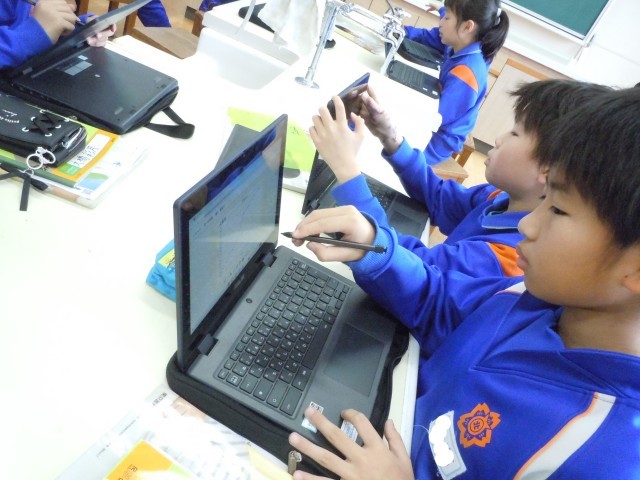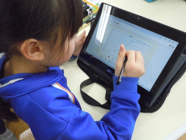 理科の時間です。先日実験した水を温め続けた時の温度の変化のグラフを見ています。ぐんぐん温度が上がる時間帯もありますが、温め続けても100度を超えないことがグラフから分かります。