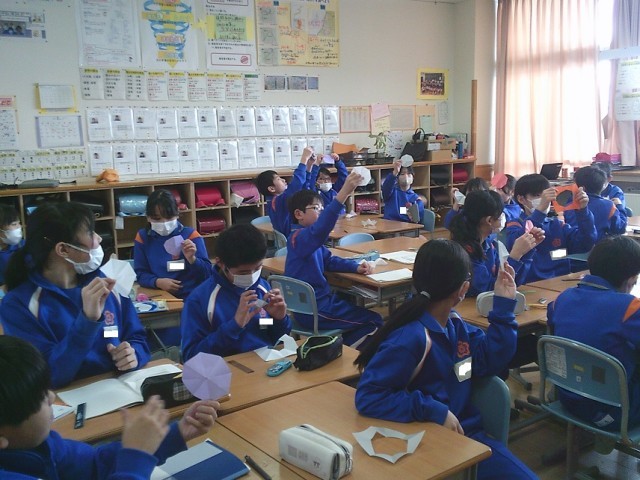 つくった八角形を見ながら、性質を調べていきました。