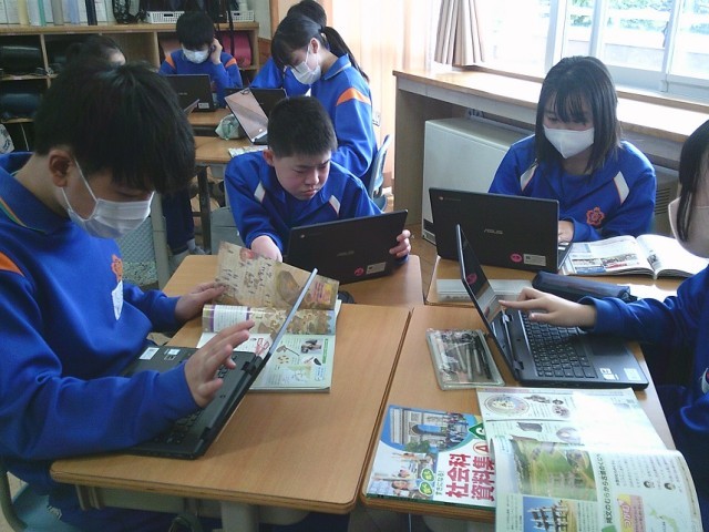 「関連画像は適切か」「見る側がとらえやすいか」等、条件を意識して既習のでーたから画像を選んだり、新たに調べて詳しい内容を付け加えようとしたりしていました。