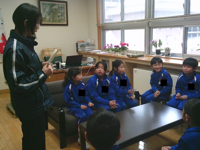 校長室で聞いてもらうということで子供たちはとても緊張しながら校長室に入りました。