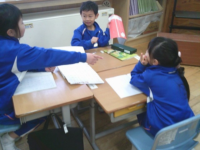 やり方を確認した後、各班で行い、楽しみながらカタカナの言葉に親しみました。