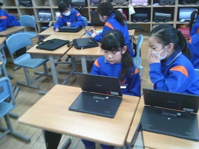 忘れた字は教科書やタブレットPCで調べ、どんどん進んで取り組みました。