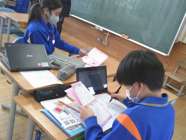 自分でコースを選んで、じっくり確認しながら進めたり、発展問題に挑戦したりしながら算数の学習に取り組んでいます。