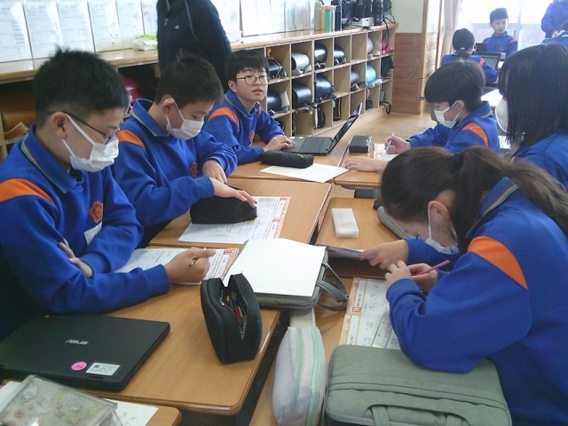クラス関係なく同じコースを選んだ友達と意見交換をして、学習を進めています。