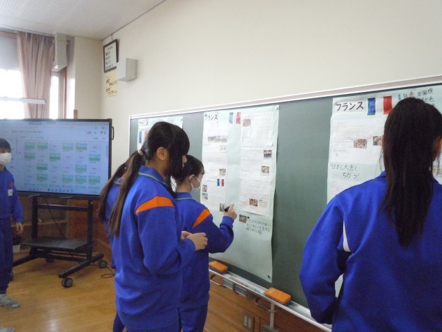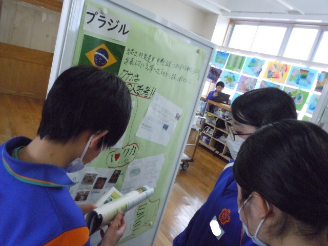 社会科の時間です。世界エージェントになって日本とのつながりを調べています。アメリカ、中国、フランス、ブラジル。知っているようで初めて知ることが多いようです。
