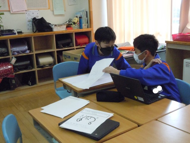 在校生プロジェクトに取り組んでいます。自分の分担の仕事を楽しんで行っています。もうすぐ最高学年です。