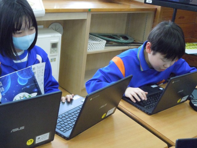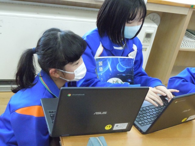 国語の時間です。「子ども未来科」があったら、何をするか自分の提案を発表する準備をしています。モデル動画を見て、自分の準備を進めていますが、動画を見ることでより高いものを目指そうという思いが高まったようです。