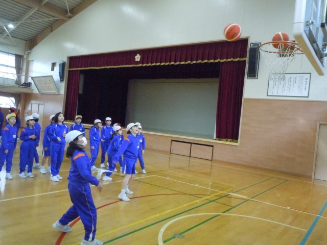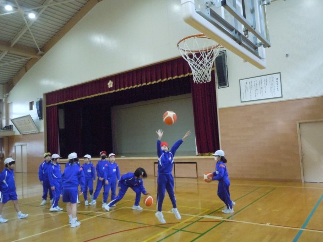 体育の時間です。バスケットボールをしています。シュート練習に取り組んでいますが、「入れ!」と声が聞こえてきそうな思いが伝わってきます。