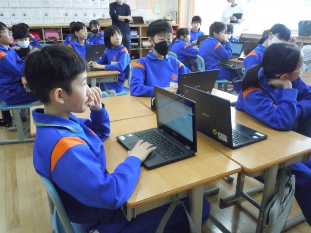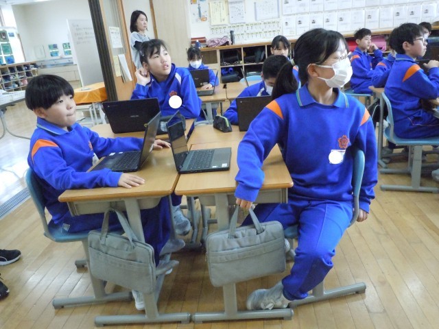 ICT支援の先生から、AIについて学んでいます。学級のお楽しみ会でみんなが楽しめる内容を聞いてみると、プロンプトに入れる内容が違うと回答が違うことに友達のタブレットをのぞきこんで驚いていました。また、今日の給食を聞くと、明らかに間違えることから、AIは間違えることもあることを学びました。そして、安全に使うために「個人情報を入れない」「秘密の情報を入れない」「著作権を守る」ことを約束しました。