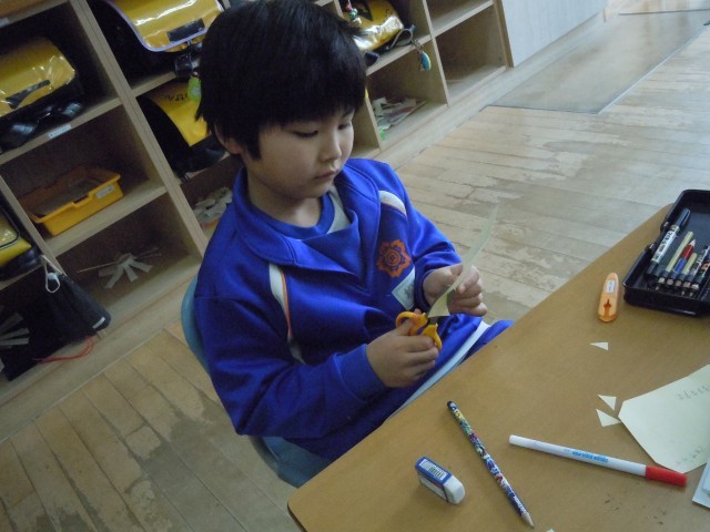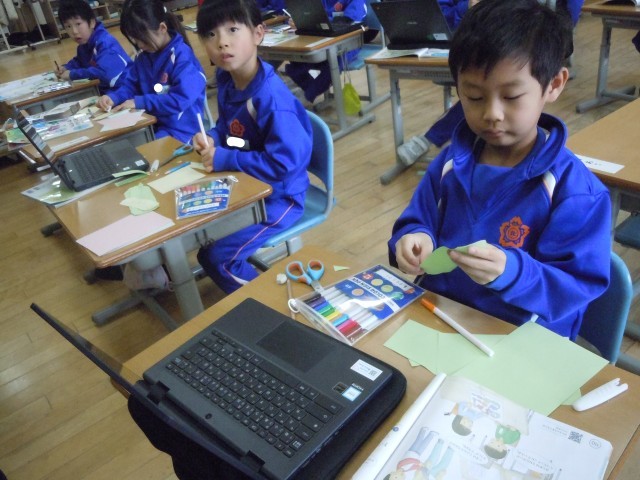 生活科の時間です。「せいちょうすごろく」をつくっています。できるようになったことや力が付いたことを1こまにしてつないでいます。「たくさんつながったらいいなあ」という声が聞かれます。