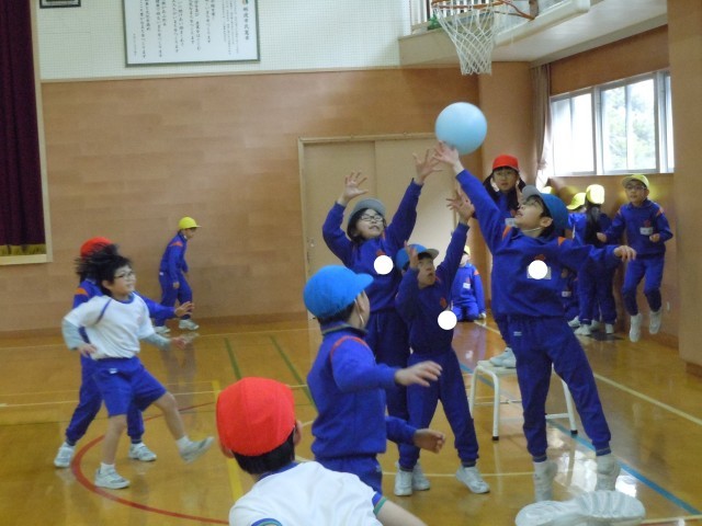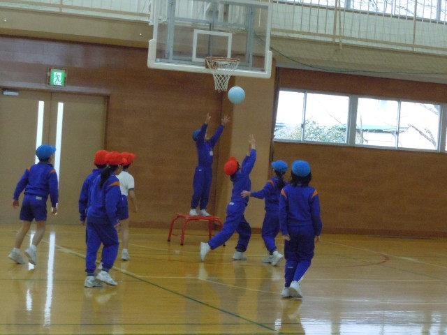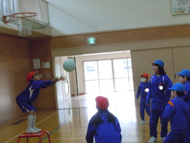 体育の時間です。ポートボールをしています。ルールを理解して動けるようになり、ゴールマンまでパスが通るようになってきました。点数が入るとますます楽しくなってきます。