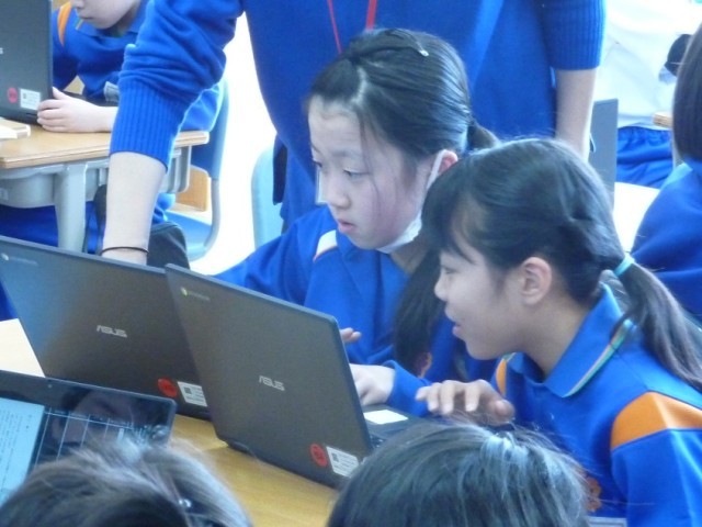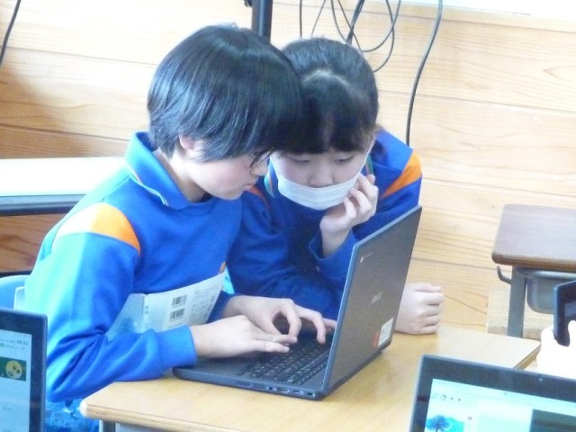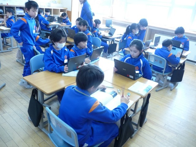 一人で考える子供、友達と一緒に考える子供など様々ですがみんな真剣です。