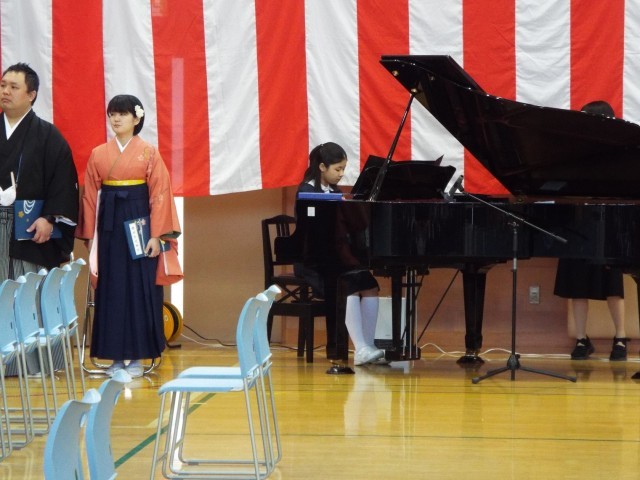 卒業生も、在校生も、練習のときより大きく響く声で言葉を言い、歌を歌いました。