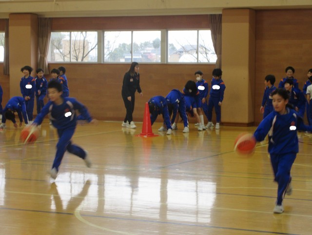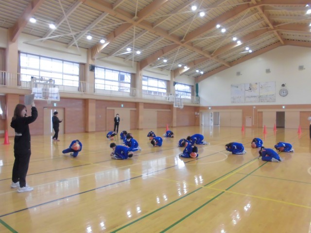 富山グラウジーズの方からは、いざというときの行動や声かけについて、バスケットボールで体を動かしながら学びました。