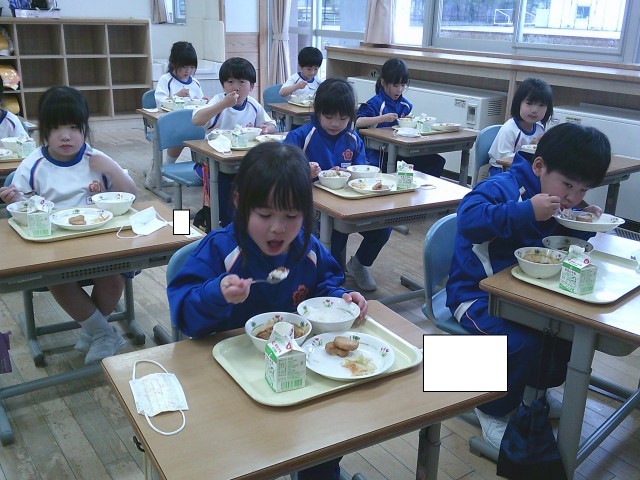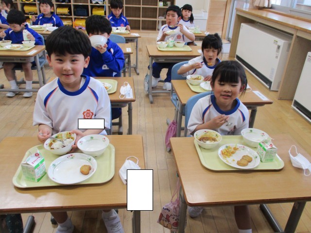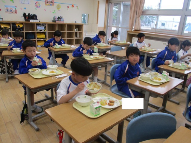 今日は1年生にとって初めての給食です。みんな朝からとても楽しみにしていました。給食のカレーを食べきり、おかわりをする子供もいました。みんな大満足でした。