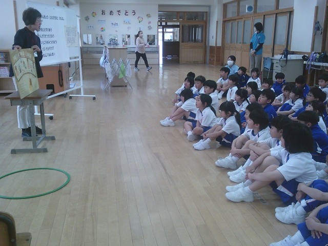 司書の先生に、楽しい絵本を2冊読み聞かせしてもらいました。